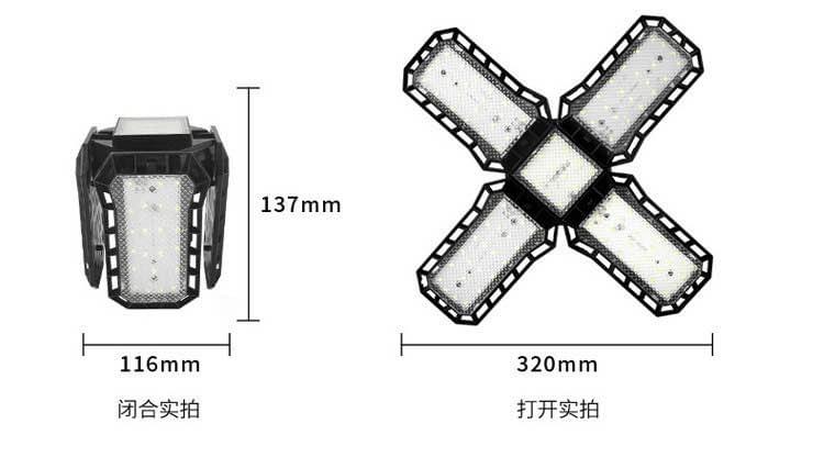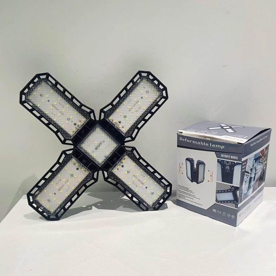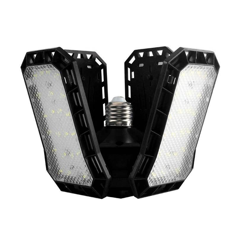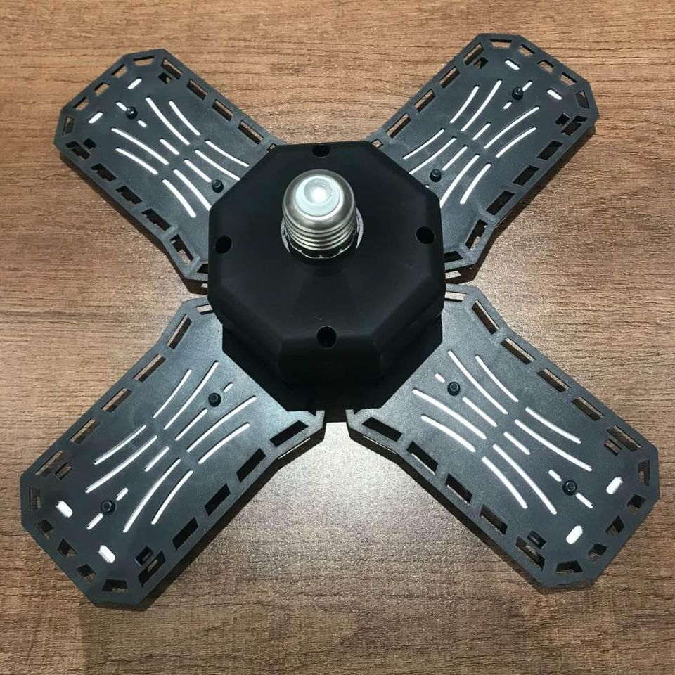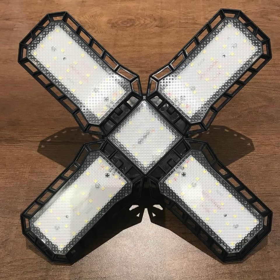 120 Watt LED Garage Light with 4 Blades and center LEDs. Made of Aluminum and PC Blades.