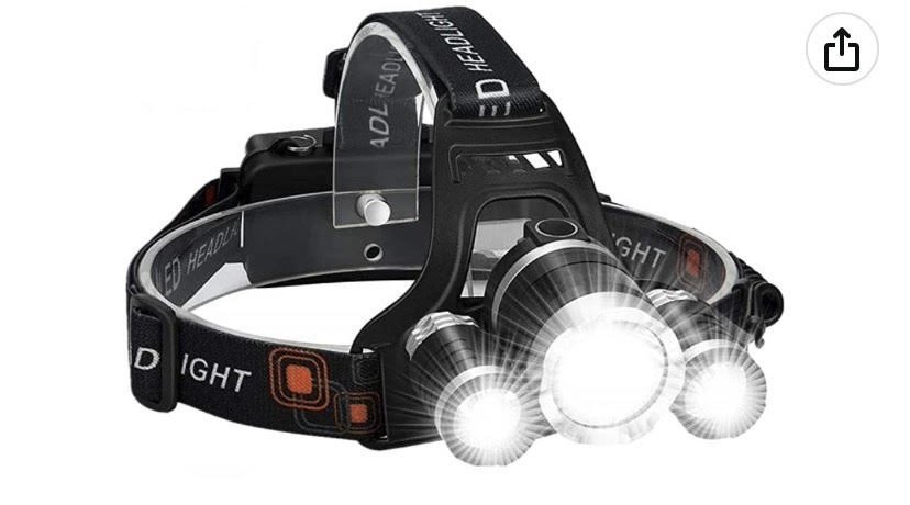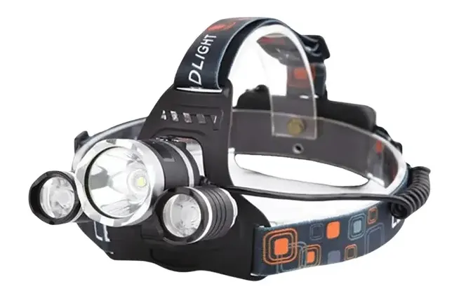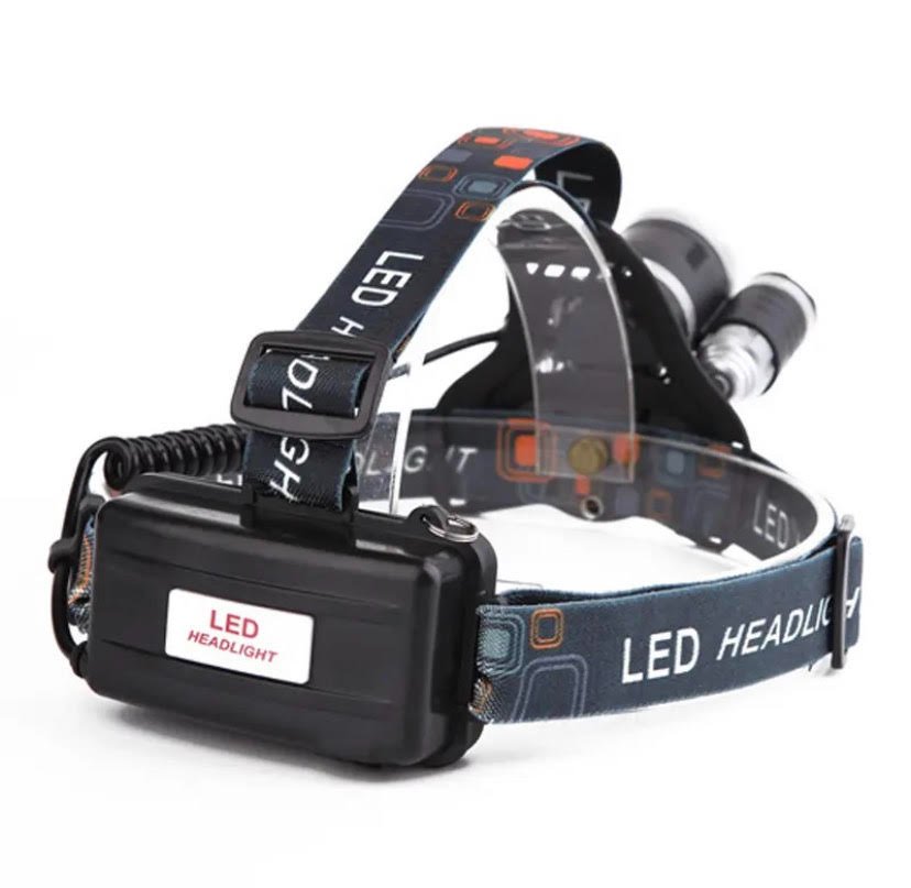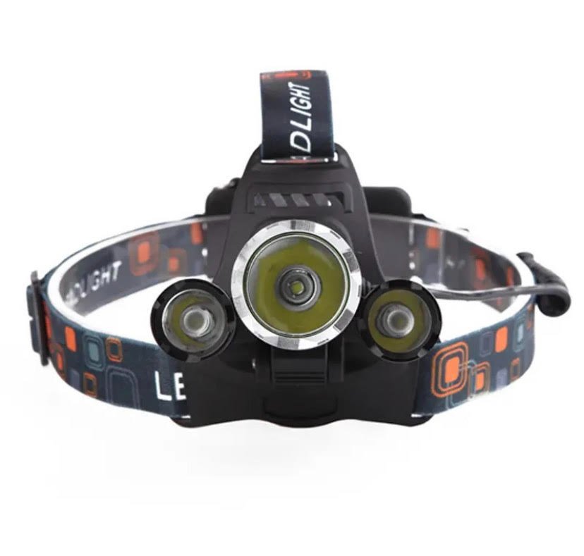 Rechargeable LED Head Lamp with adjustable strap, 3 LED heads and 4 different light modes.